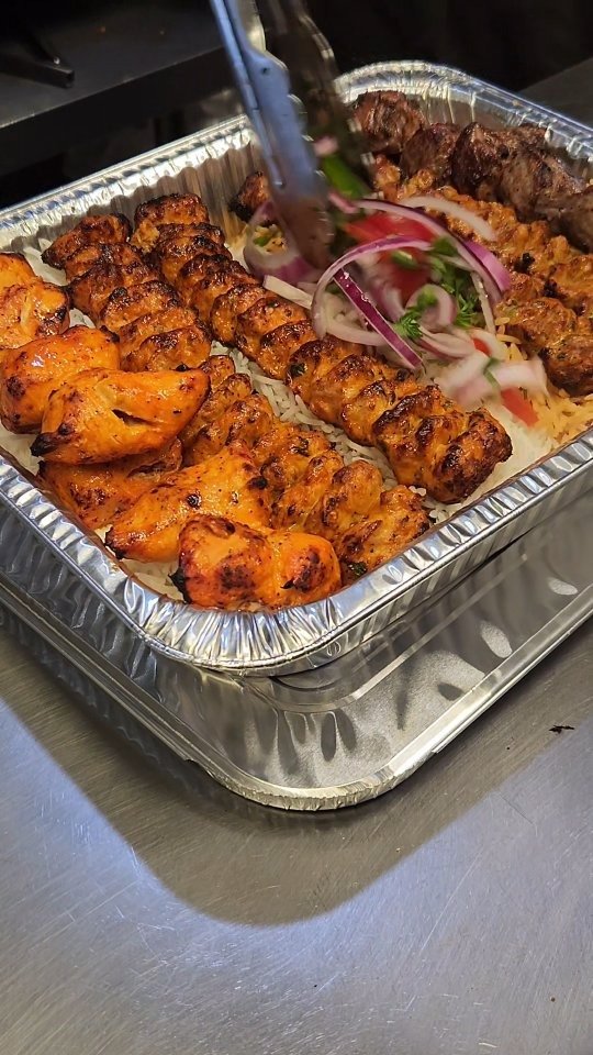 The menu features a rich variety of freshly grilled kabobs, including chicken, lamb, beef, salmon, chapli, and kofta. These dishes are served with aromatic basmati rice, freshly baked naan from a traditional clay tandoor, crisp salad, and flavorful sides like chickpeas or spinach stew. Guests frequently praise the chapli kabob, lamb chops, and gyro plates. Many also enjoy the thoughtful touches such as complimentary tea, soup, and warm bread that come with every meal.