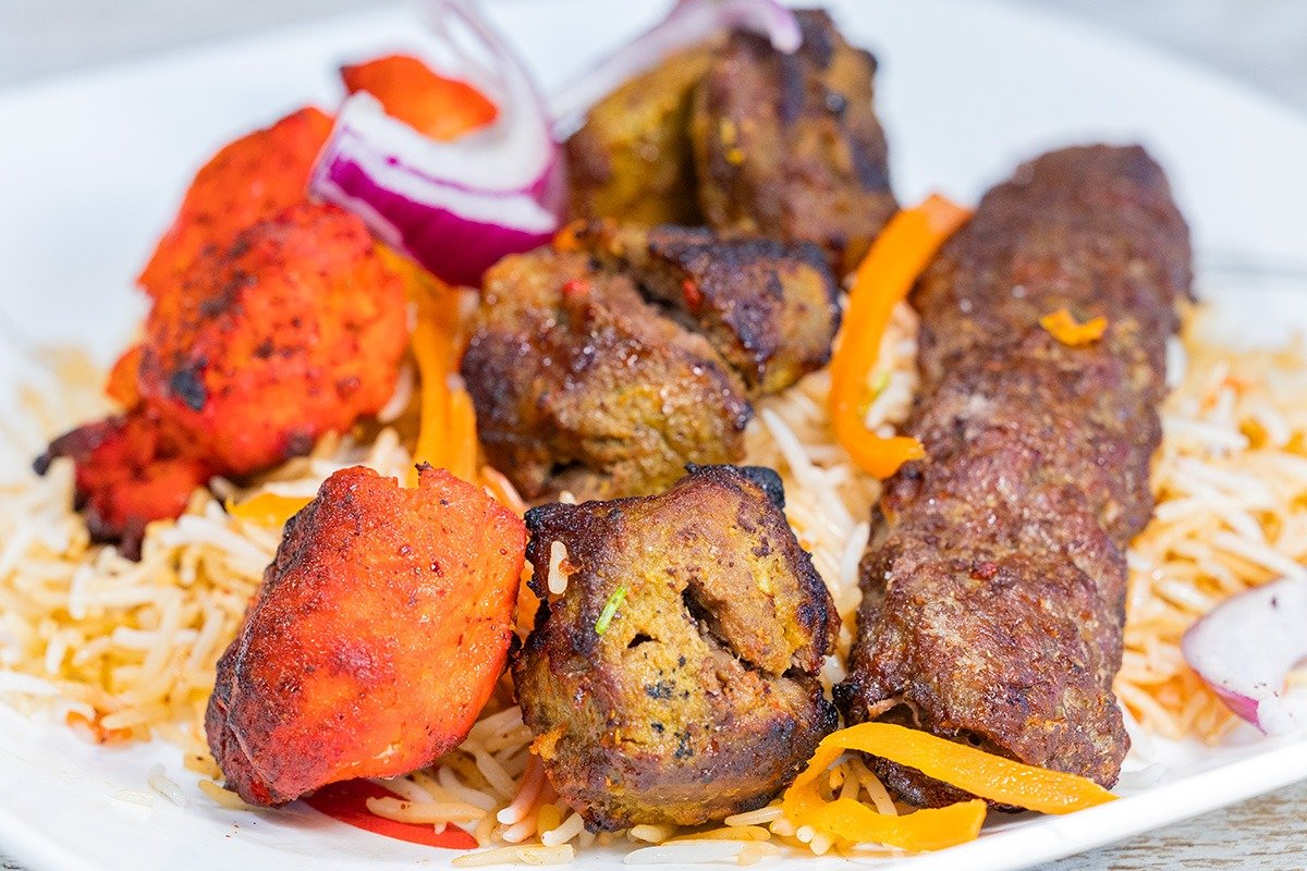 The menu features a wide range of flame-grilled kabobs, including chicken, lamb, beef, and salmon, served with seasoned rice, fresh naan or pita, crisp salads, and rich sauces. Signature dishes such as shawarma, lamb chops, and chickpea-based sides like hummus and baba ghanoush are especially popular. Vegetarian and vegan options are available as well, making it a great choice for diners with diverse dietary needs.